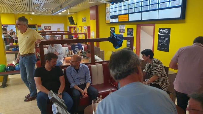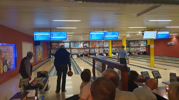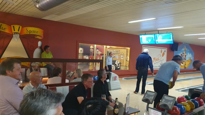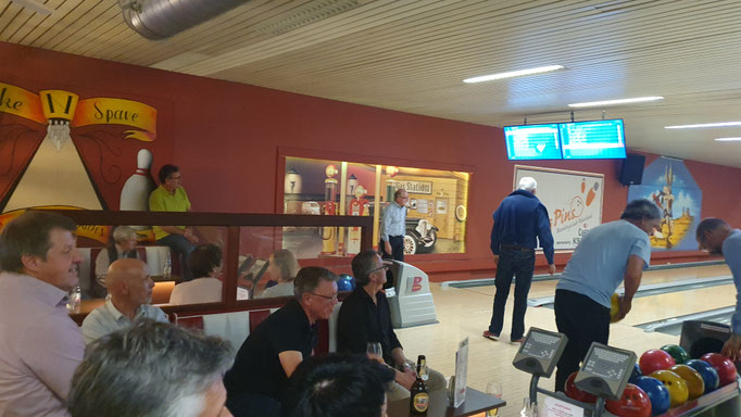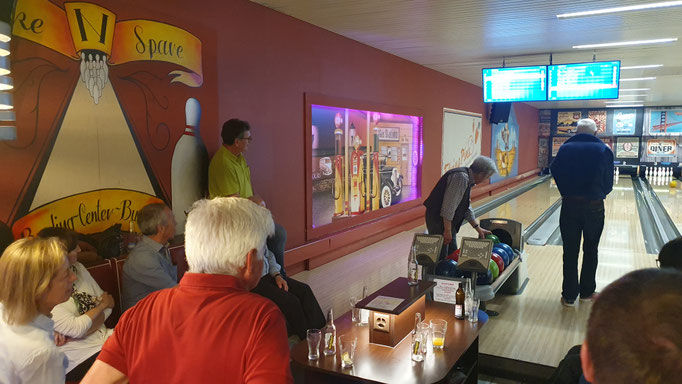 Viel Action und Spannung beim Bowlingspiel. An diesem Tag dürfen auch unsere Frauen mit dabei sein.
