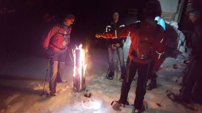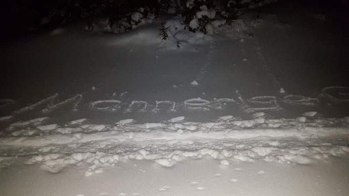 Die heutige Turnstunde verschieben wir nach draussen. Mit angeschnallten Skischuhen waten wir durch den Tiefschnee.
